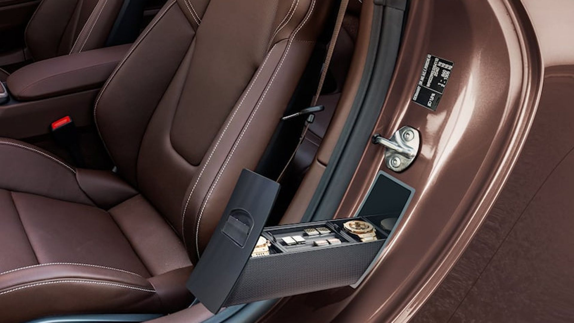 Porsche je patentirao pretinac koji se nalazi u okviru vrata kao mjesto za odlaganje posebno vrijednih stvari. Kupac se ne mora brinuti da će voda, na primjer, curiti u taj korisni prostor. Otvor na pragu vrata je potpuno zatvoren nakon otvaranja i zatvaranja. Patentna dokumentacija otkriva da pretinac može biti dubok od deset do dvadeset pet centimetara.
