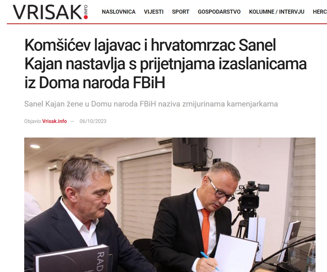 “Protiv mene hrvatski mediji u Mostaru, ali i Zapadnoj Hercegovini, godinama provode bjesomučnu negativnu kampanju. Nastoje na sve načine da me ocrne i prikažu na najgore načine. A bar su oni u tome majstori. Laž je jedino što znaju, otkako su nastali. Kroz svoje kvazimedijsko djelovanje služe se nacističkim metodama, apsolutnim neistinama i najgrubljim podmetanjima. Idu toliko daleko da sve uključuju - i moju porodicu, suprugu, moju djecu, majku, sestru… Ne ustručavaju se ni od prijetnji. Omogućavaju fašističke komentare, prijetnje, uvrede u komentarima ispod lažnih tekstova koje objavljuju”, naveo je Kajan.