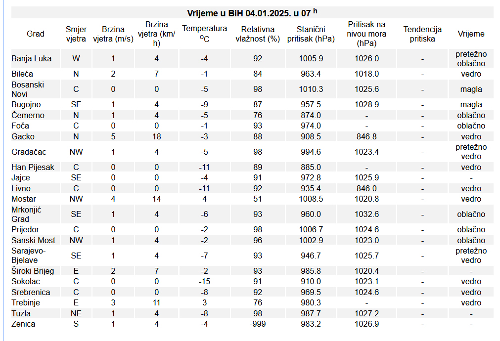 Jutros je najniža temperatura zraka izmjerena na Sokocu. U nastavku pogledajte izvještaj FHMZ-a od 7 sati!