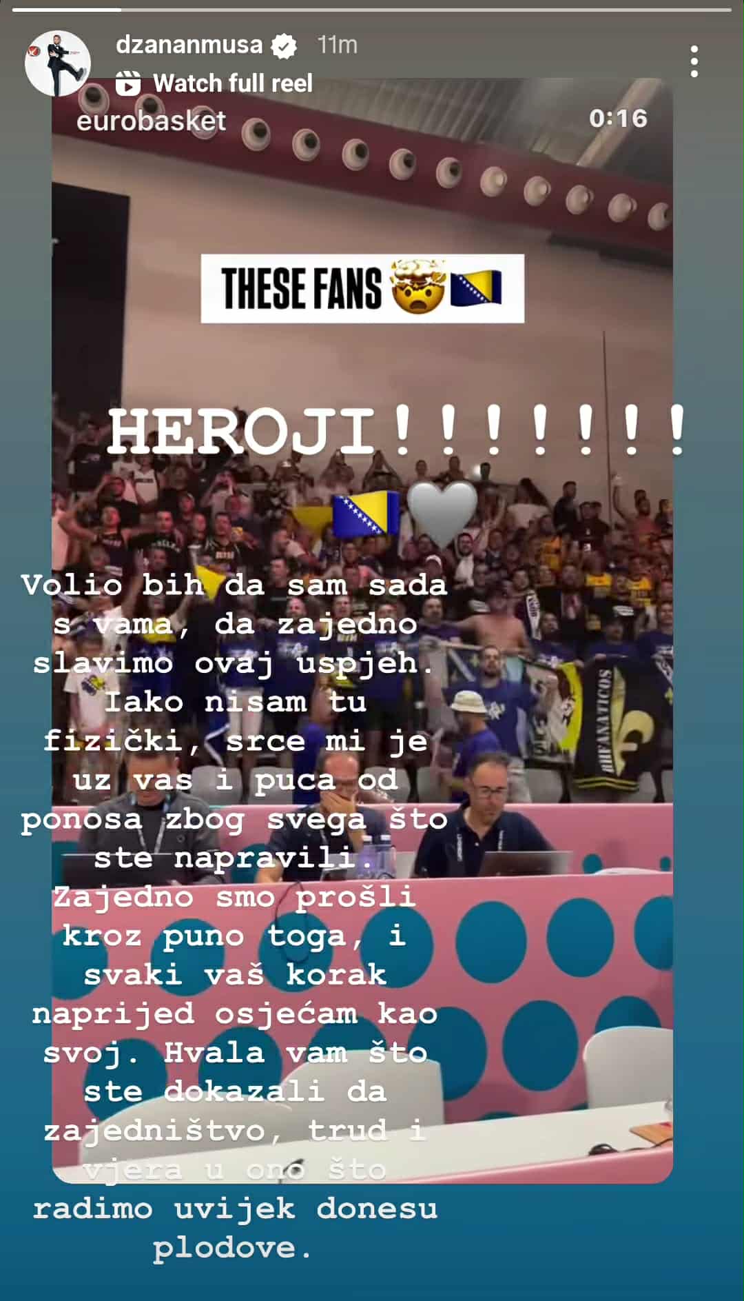 I dok su Zmajevi slavili na parketu, svoju podršku poslao je i povrijeđeni Džanan Musa, koji zbog zdravstvenih problema nije mogao nastupiti na turniru.