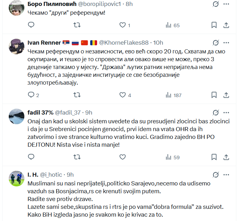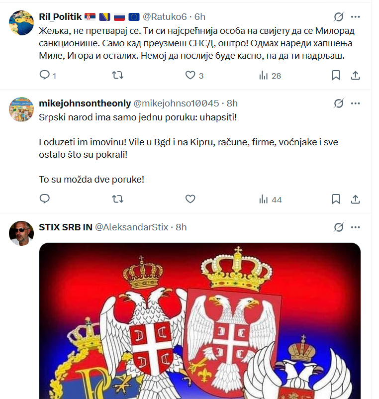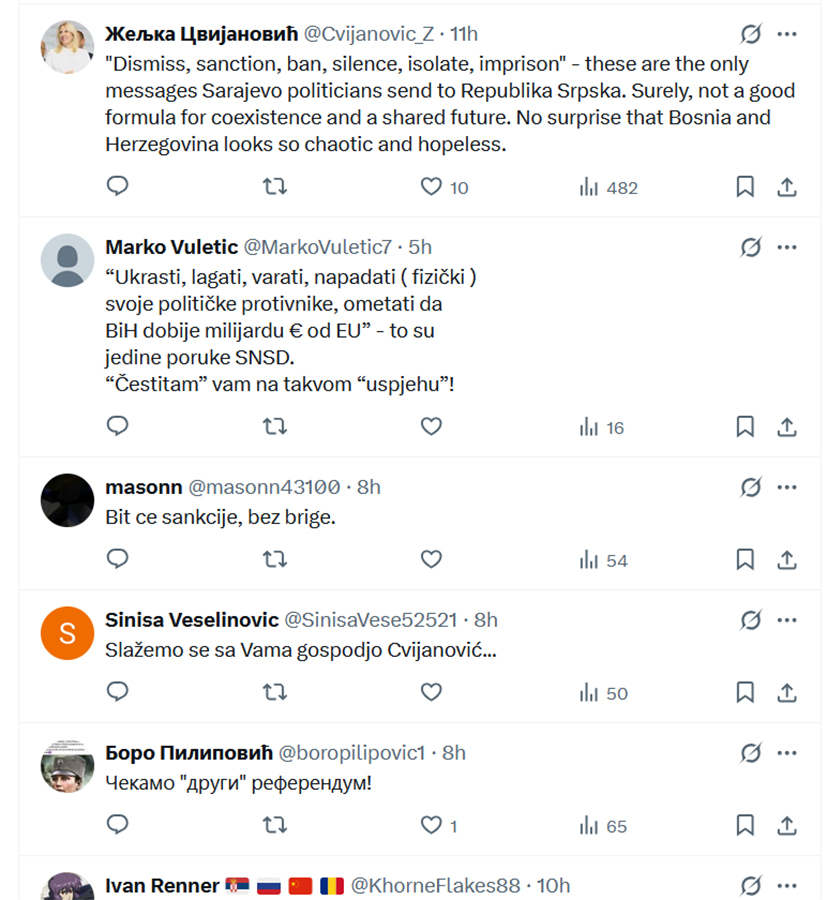Ne stišavaju se reakcije na društvenim mrežama, nakon objave Željke Cvijanović, članice Predsjedništva BiH.