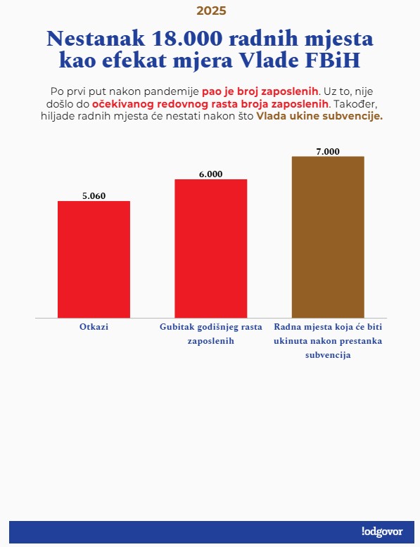 Uz više od deset hiljada radnih mjesta koje je Federacija izgubila u 2025. zbog otkaza, ali i obustave redovnog godišnjeg rasta, po okončanju subvencija će na udaru biti još nekoliko hiljada radnih mjesta.