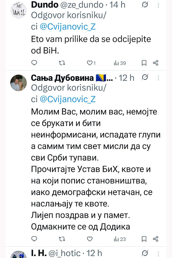 Usijedile su brojne reakcije, a „Slobodna Bosna“ donosi samo one komentare koji nemaju uvredljiv sadržaj.