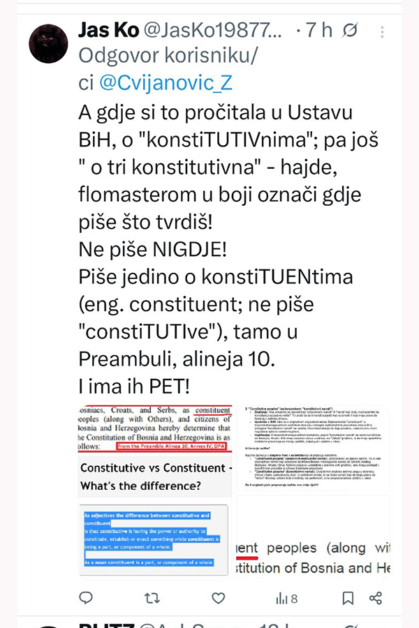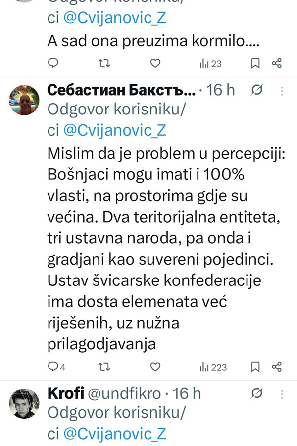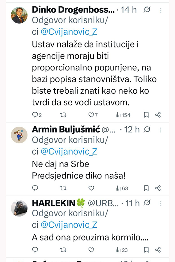 Ne stišavaju se reakcije na društvenim mrežama, nakon što je Željka Cvijanović, članica Predsjedništva Bosne i Hercegovine, spomenula predsjednika SDA Bakira Izetbegovića.