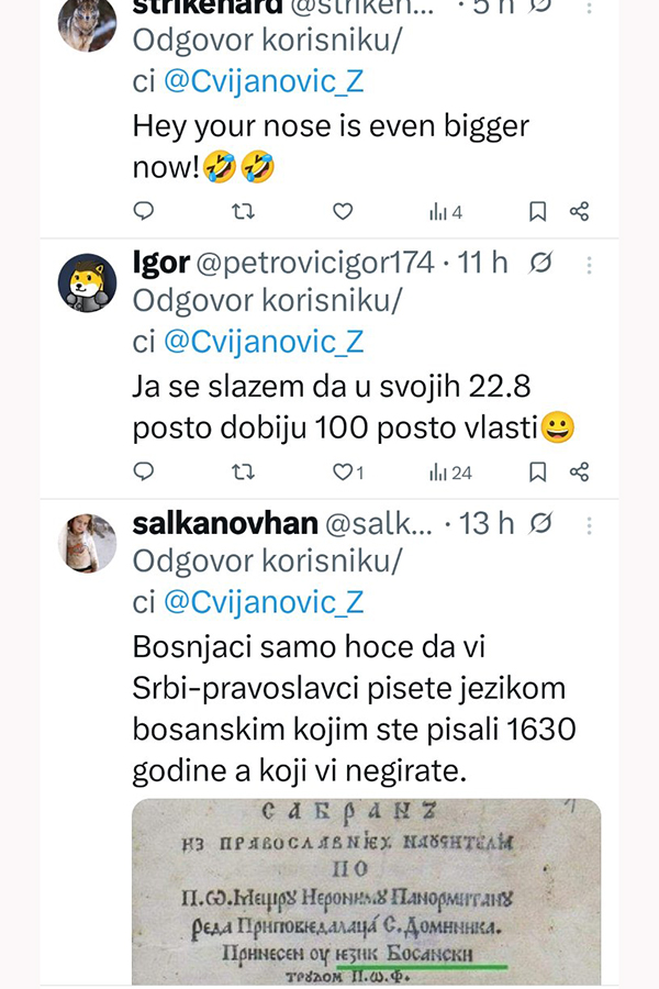 To što on smatra da bi Bošnjaci - muslimani zbog brojnosti trebali biti nadređeni, a hrišćani njima podređeni je u skladu sa njegovom ekstremističkom agendom. Počelo je novo vrijeme, a ono donosi i anesteziranje njegove radikalne politike. Bilo bi korisnije da prestane da sanja o unitarnoj državi, jer se to u BiH nikada neće ostvariti.