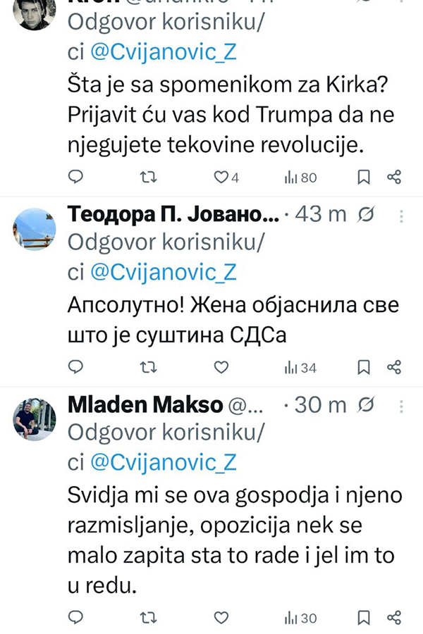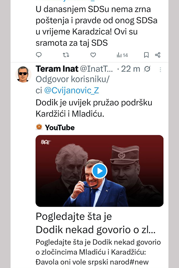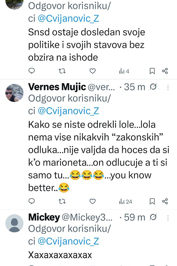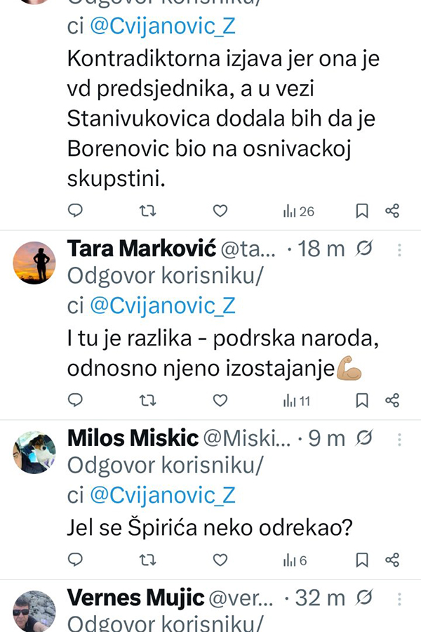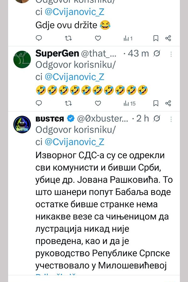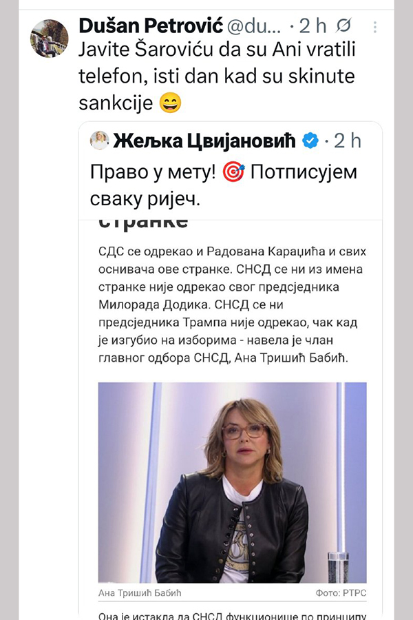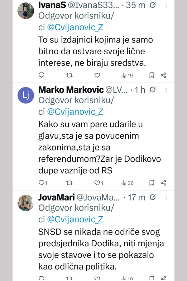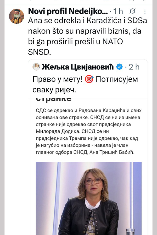 Komentar Ane Trišić Babić na društvenim mrežama podijelila je Željka Cvijanović, članica Predsjedništva BiH. Uslijedile su brojne reakcije, a "Slobodna Bosna" donosi samo one komentare koji nemaju uvredljiv sadržaj.