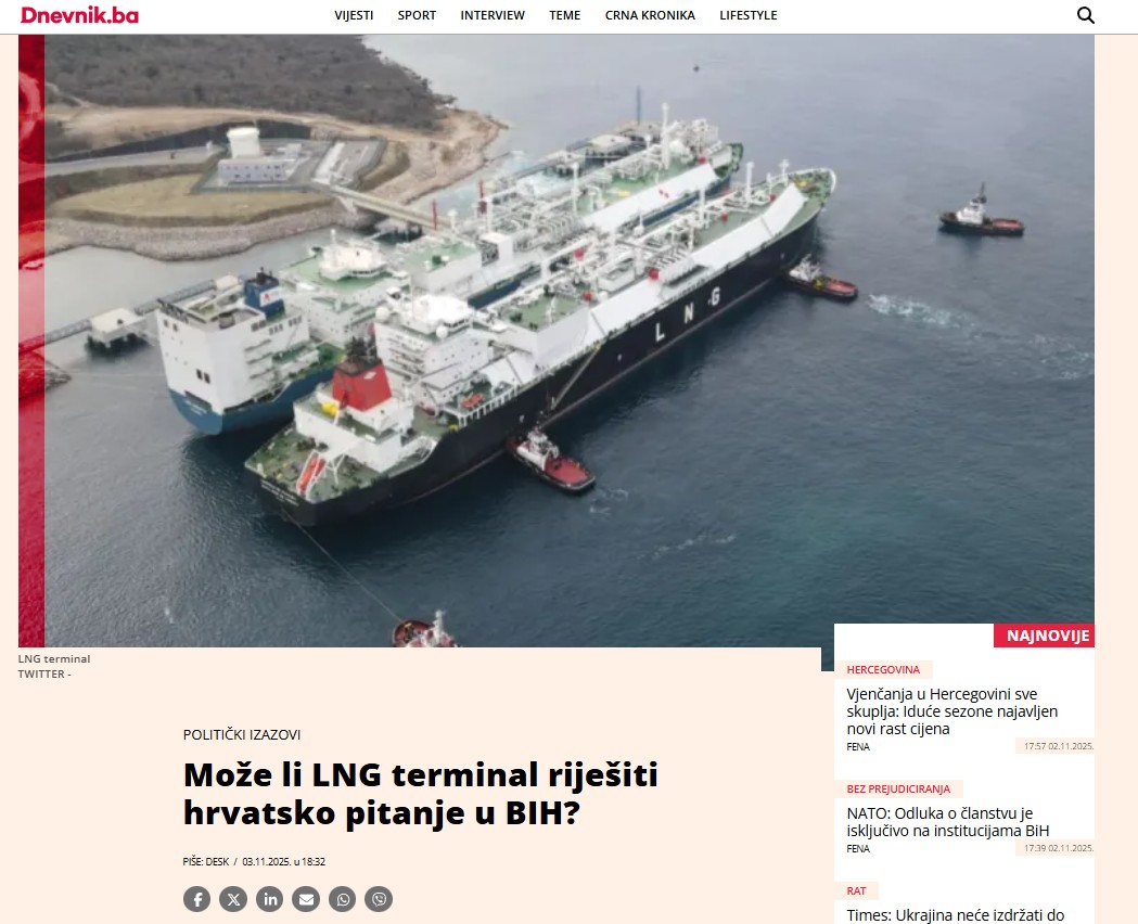 Projekat Južne plinske interkonekcije i uvoz plina u BiH i regiju preko terminala na Krku hrvatska politika, i u Hrvatskoj i u BiH, nastojat će iskoristiti kao valutu za ostvarivanje strateškog cilja izmjene izbornog zakona u BiH.