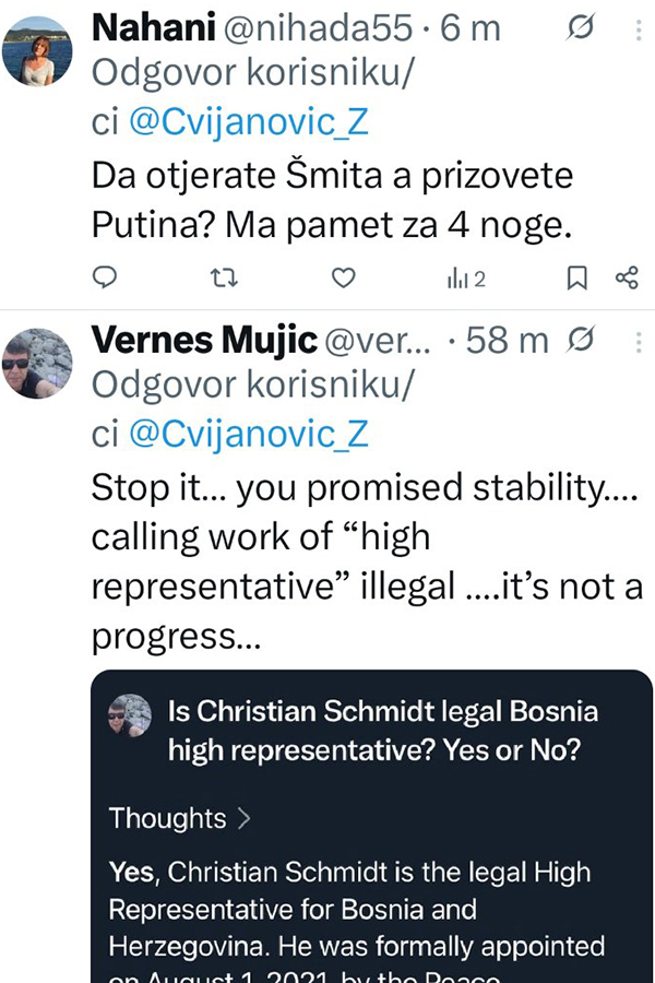 Ne stišavaju se reakcije na društvenim mrežama, nakon istupa Željke Cvijanović, članice Predsjedništva Bosne i Hercegovine.