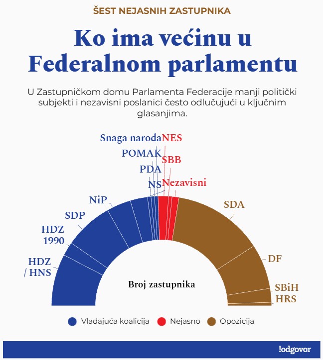 Iako vladajući blok formalno ima više zastupnika, stabilnost većine i dalje zavisi od podrške manjih stranaka i nezavisnih zastupnika, uključujući NES, SBB i nezavisne Aliefendića i Nikšića.
