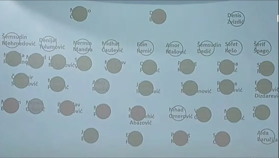 Za su glasali zastupnici HDZ-a (Marinko Čavara, Predrag Kožul, Darijana Filipović, Slavko Matić), SNSD-a sa partnerima u vlasti RS-a (Nebojša Radmanović, Milorad Kojić, Ljubica Miljanović, Sanja Vulić, Miroslav Vujičić, Obren Petrović, Čedomir Stojanović, Milan Petković), SDP-a (Jasmin Imamović, Saša Magazinović, Rejhana Dervišević, Ermina Salkičević-Dizdarević), te DF-a (Vlatko Glavaš, Milan Dunović i Zlatan Begić) i NES-a Jasmin Emrić i Elvisa Hodžić.