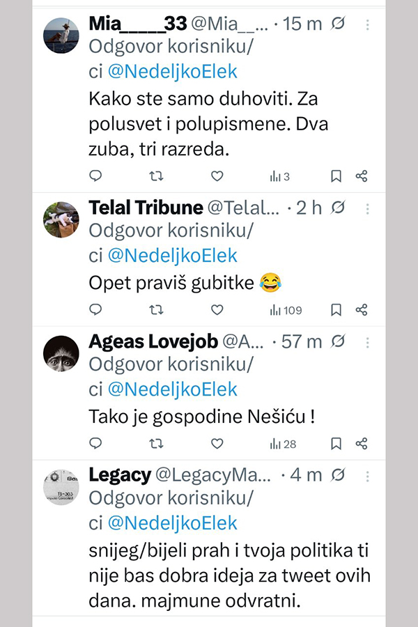 Ne stišavaju se reakcije na društvenim mrežama, nakon istupa Nedeljka Eleka.