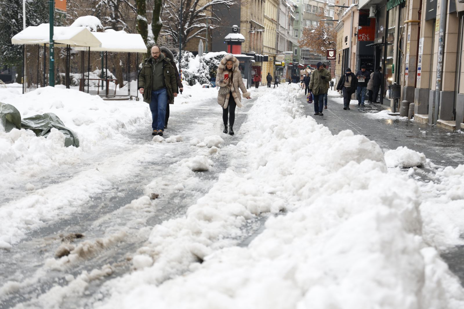 Jutarnja temperatura u glavnom gradu iznosila je minus pet stepeni, što je niže nego na Bjelašnici, gdje su meteorolozi zabilježili minus dva. Hladnoća dodatno pogoršava stanje na terenu, jer se snijeg pretvara u led, a najavljene nove padavine nagovještavaju da će problemi potrajati.