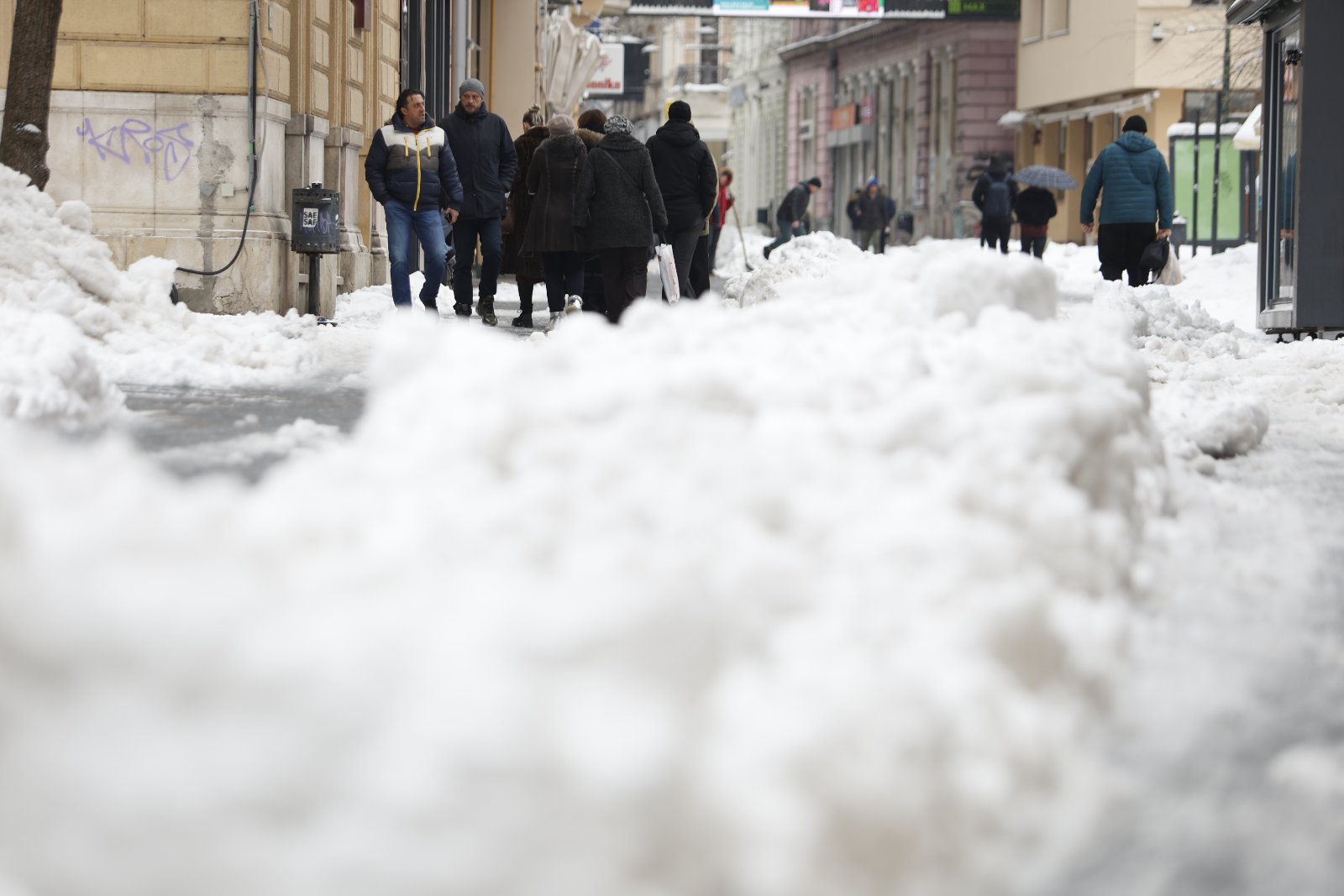 Na brojnim lokacijama kretanje je izuzetno otežano, jer su trotoari, prilazi zgradama i sporedne ulice gotovo neprohodni.