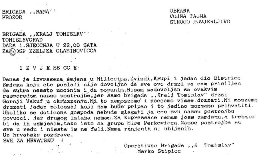 Dokaz planiranja napada i okupacije na Gornji Vakuf od strane HVO-a