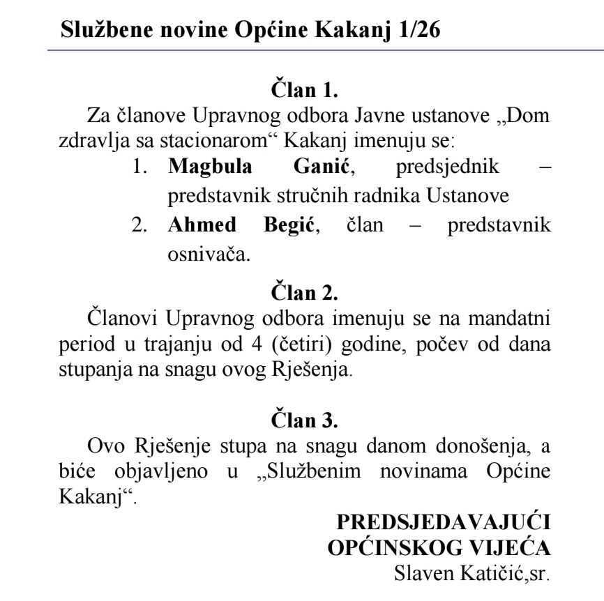 Njihov kadar Magbula Ganić, kandidatkinja NiP-a na proteklim Lokalnim izborima, imenovana je za predsjednicu UO Doma zdravlja Kakanj.