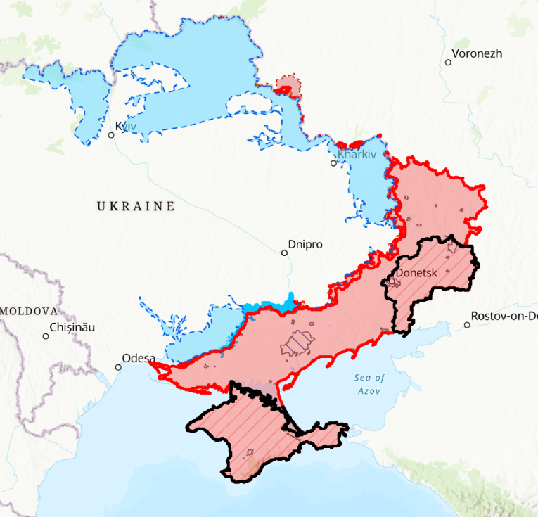 Donbas, koji se sastoji od pokrajina Donjeck i Luhansk, bedem je protiv ruskih invazijskih snaga još od 2014. godine. Odbrambena linija duga 50 kilometara, koja obuhvata gradove Kramatorsk, Slovjansk, Družkivku i Kostjantinivku, često se naziva "pojasom tvrđava". Njegovo ustupanje predstavlja crvenu liniju za Zelenskog i većinu Ukrajinaca, prema anketama s početka ovog mjeseca.