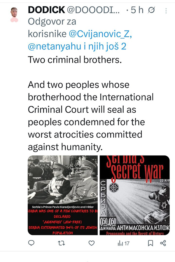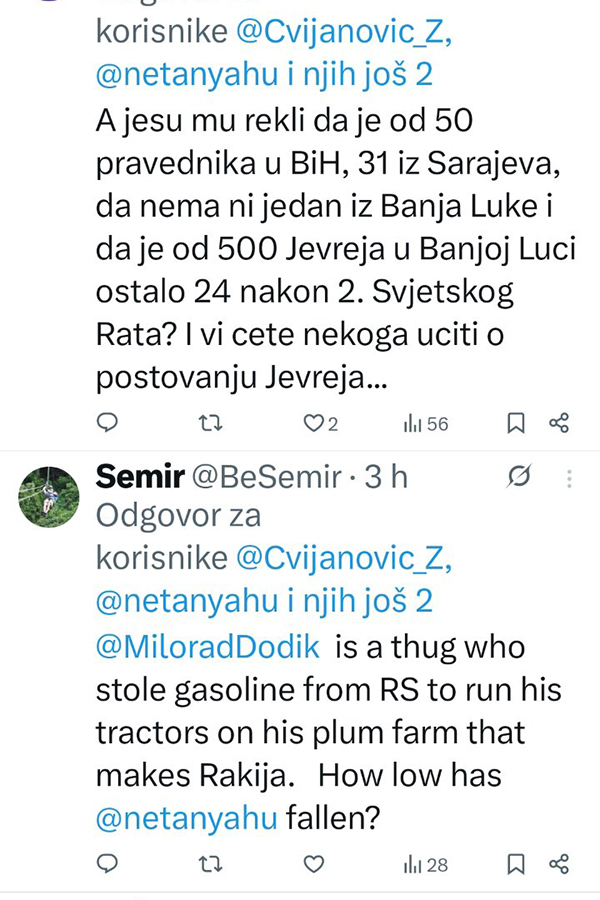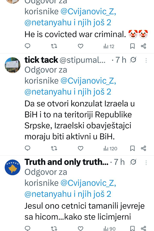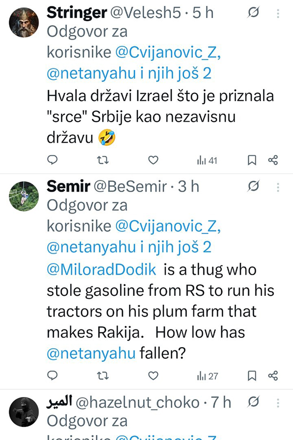 Željka Cvijanović je, naime, zahvalila premijeru Izraela Benjaminu Netanyahuu, nakon čega su uslijedili brojni komentari.