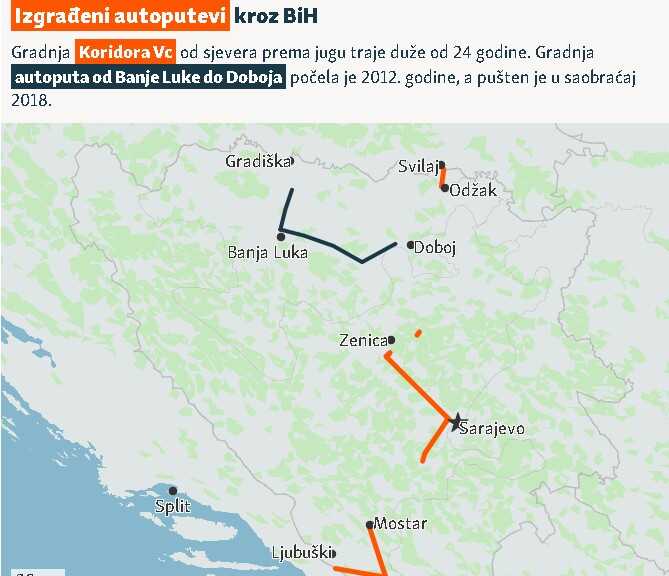 U BiH je izgrađeno oko 250 kilometara autoceste, u usporedbi s više od 1.300 kilometara u Hrvatskoj i oko 1.000 kilometara u Srbiji.