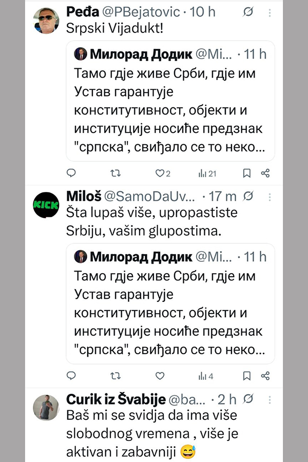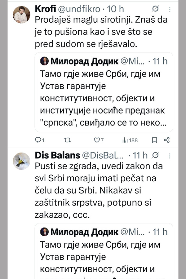 Ne stišavaju se reakcije, nakon istupa Milorada Dodika, predsjednika SNSD-a.