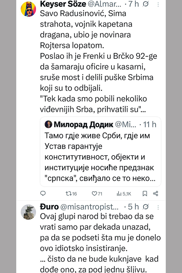 NAPOMENA: Komentari odražavaju stavove njihovih autora, a ne nužno i stavove redakcije Slobodna Bosna. Molimo korisnike da se suzdrže od vrijeđanja, psovanja i vulgarnog izražavanja. Redakcija zadržava pravo da obriše komentar bez najave i objašnjenja. Zbog velikog broja komentara redakcija nije dužna obrisati sve komentare koji krše pravila. Kao čitalac također prihvatate mogućnost da među komentarima mogu biti pronađeni sadržaji koji mogu biti u suprotnosti sa vašim vjerskim, moralnim i drugim načelima i uvjerenjima.