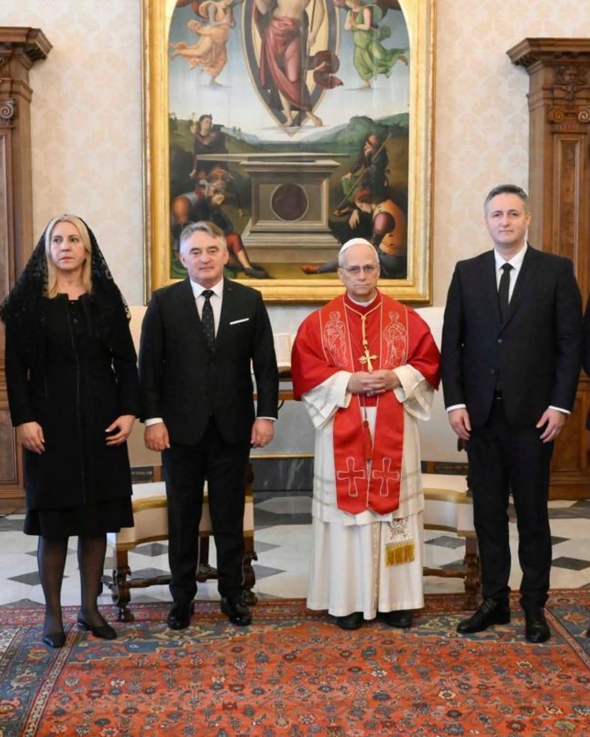 Uz sve treba napomenuti da je Željka Cvijanović bila u Vatikanu obučena kao skrušena monahinja, sva u crnom, dok u Jasenovac ide uz bijelim sakou, satima čekala prijem kod svog Svetog oca pape Lava 14, koji je ipak odbio primiti, razgovarao je samo sa Željkom Komšićem dok se sa Cvijanovićkom i Bećirevićem samo fotografisao u holu Vatikana, zaključio je Vukanović.