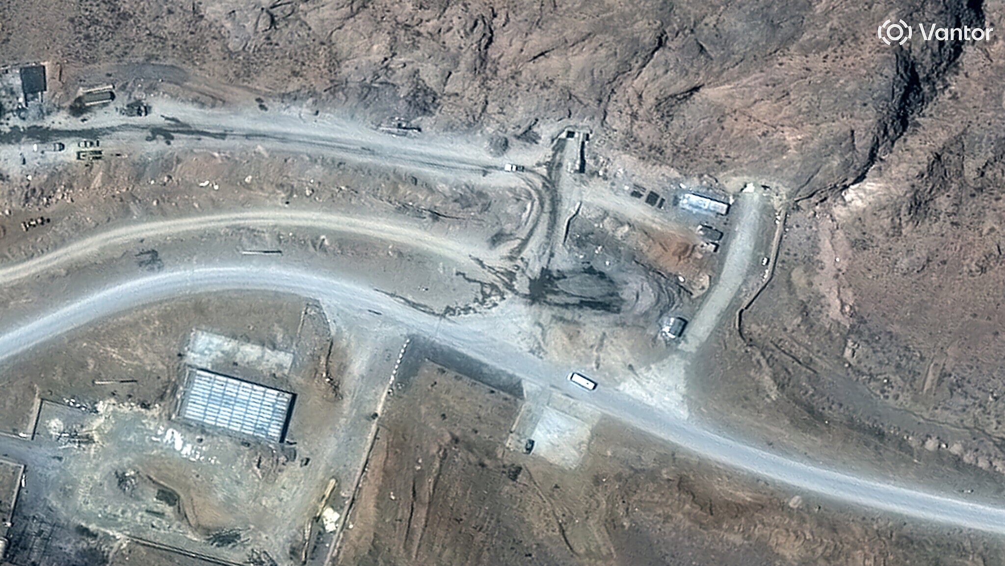 Sataelitski snimak prikazuje ulaze u tunele u raketnom kompleksu u Isfahanu, 27. februar 2026. (Satellite image © 2026 Vantor / AFP)