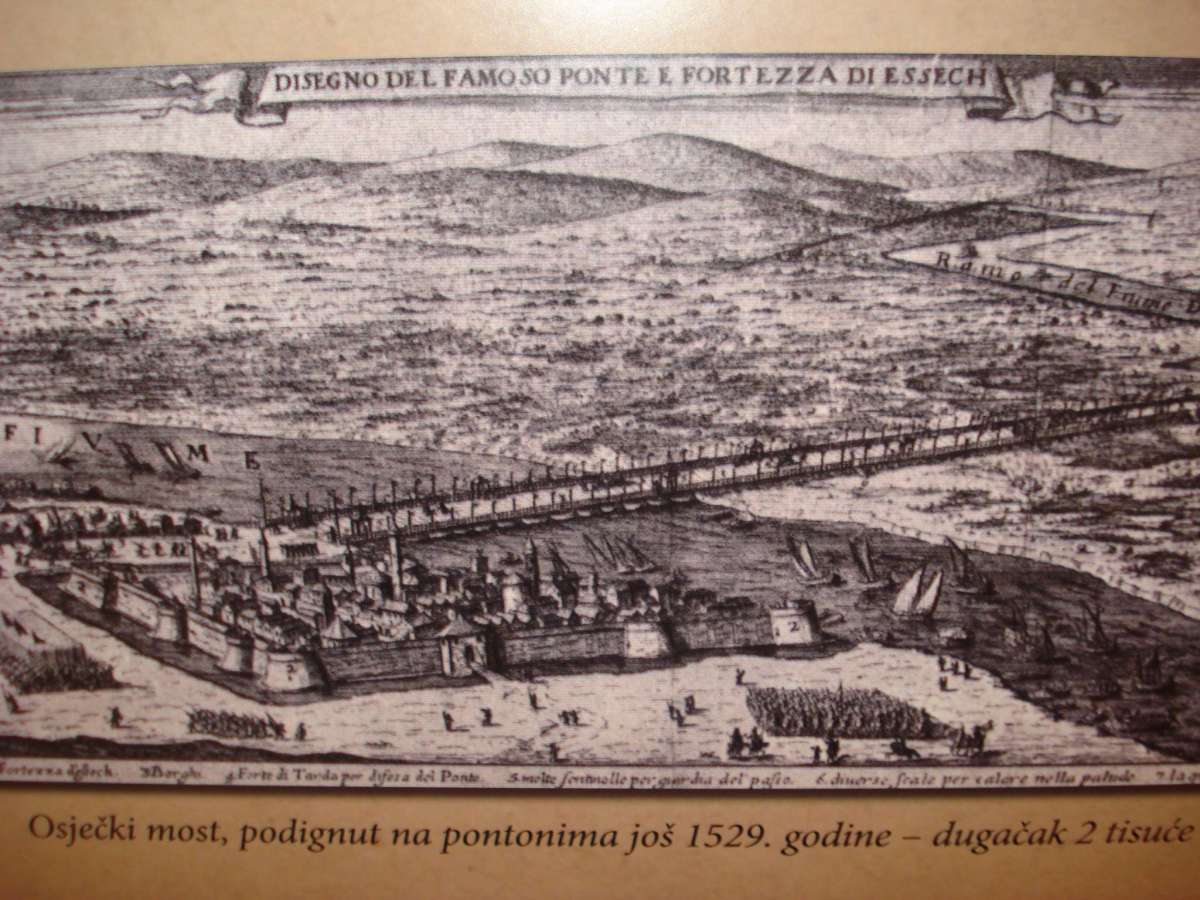 Osijek je kudikamo postao poznatiji po jednom od svjetskih čuda onoga doba, Sulejmanovom mostu izgrađenom u ljeto 1566. godine, za vrijeme trećeg i posljednjeg pohoda sultana na Beč. Most je od Osijeka išao preko Drave i močvarnog područja Darde u Baranji. Nikola Zrinski ga je djelomično spalio 1664.godine, a ta vijest bila je medijska senzacija onodobne Europe te su tom prigodom nastale brojne grafi ke s prikazom mosta. Most je obnovljen sa djelomično izmijenjenom trasom, a svoj konačan kraj doživio je 1686. godine.