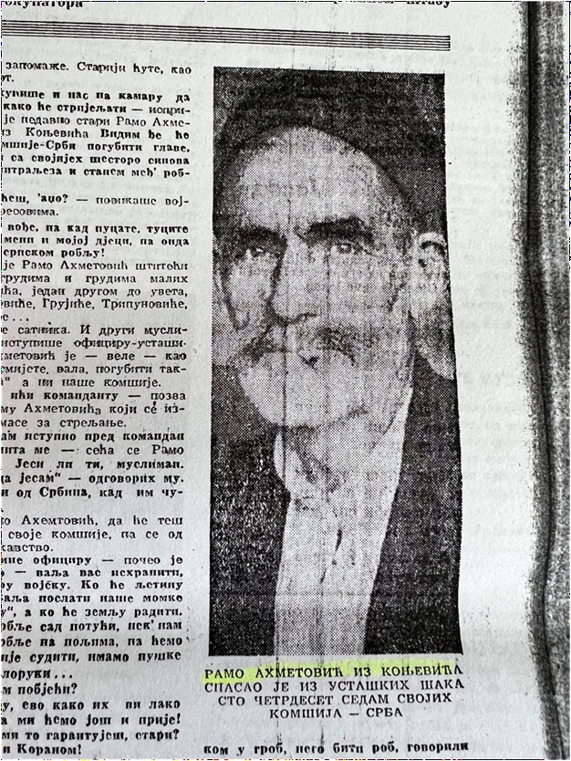 U nastavku prenosimo originalni prepis zabilježenog svjedočenja Rame Ahmetovića iz Konjević Polja o zločinima ustaša i domobrana iz 1941. godine. U današnjem vremenu, kada se događaji iz Drugog svjetskog rata sve češće zloupotrebljavaju za političke manipulacije, smatramo važnim da se ovakva svjedočenja ponovo „osvježe“ i stave u svoj izvorni kontekst — šezdeset godina nakon njihovog prvobitnog objavljivanja.