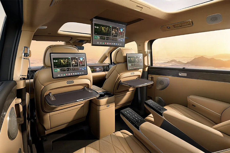 Jedan ekran otvara se s krova, a dva su ispred putnika u drugom redu sjedala. Ukupno je šest velikih ekrana u vozilu. Putnici u drugom redu imaju opciju električnog namještanja sjedala.