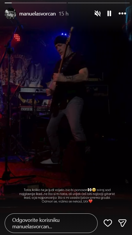 Od svog oca Manuela se oprostila emotivnim videom s jednog od njegovih koncerata uz dirljive riječi: "Tata, koliko te je ljudi voljelo, bio bi ponosan, sviraj sad najglasnije ikad... ne zato što si mi tata, ali uvijek ćeš biti najbolji gitarist ikad, a ja najponosnija što si mi usadio ljubav prema glazbi. Odmori se, vidimo se nekad, btk."