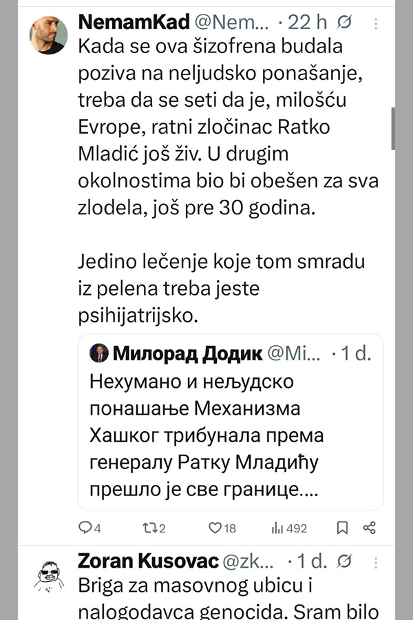 Milorad Dodik je, naime, ponovno komentirao zdravstveno stanje ratnog zločinca Ratka Mladića, nakon čega su uslijedile brojne reakcije. Posebno su zanimljivi komentari iz susjedne Srbije.