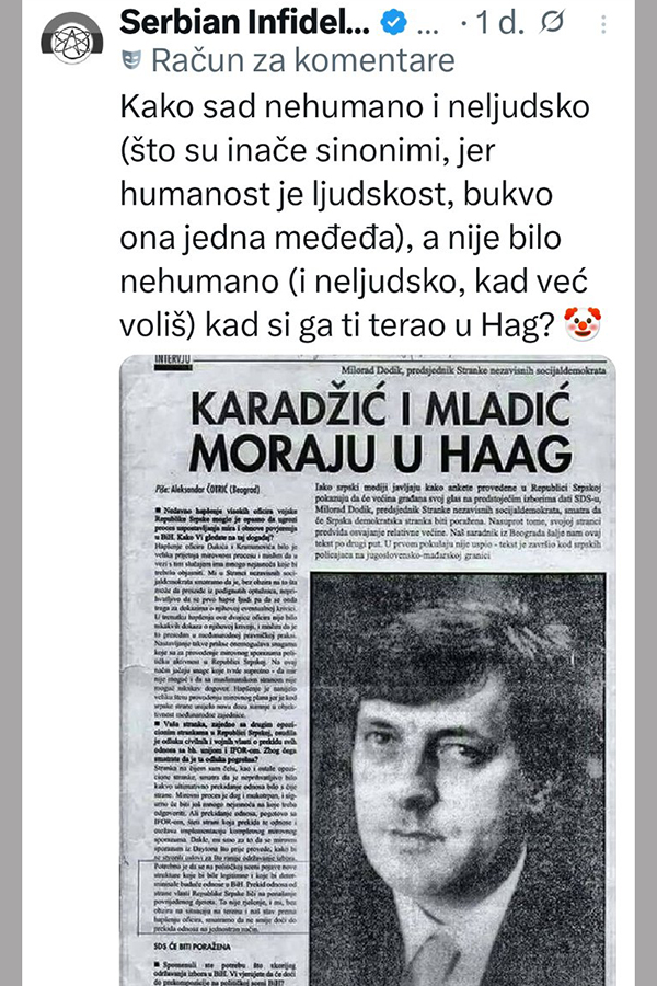Ne stišavaju se reakcije na društvenim mrežama, nakon istupa Milorada Dodika, predsjednika SNSD-a.